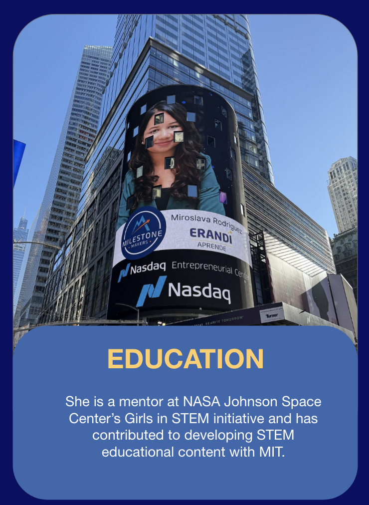 Erandi Aprende is a tech-based social venture addressing the significant underrepresentation of Latina girls in STEAM fields. Their bilingual, AI-powered learning platform enables teachers and parents to guide girls aged 8–12 through hands-on, culturally relevant STEAM projects that build creativity, and critical thinking.