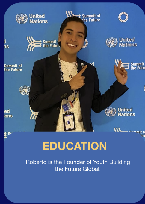 Roberto is the Founder of Youth Building the Future Global. YBTFG fosters a global community of informed and empowered youth to address climate change, sustainability challenges and recognize the disproportionate impact on vulnerable regions.