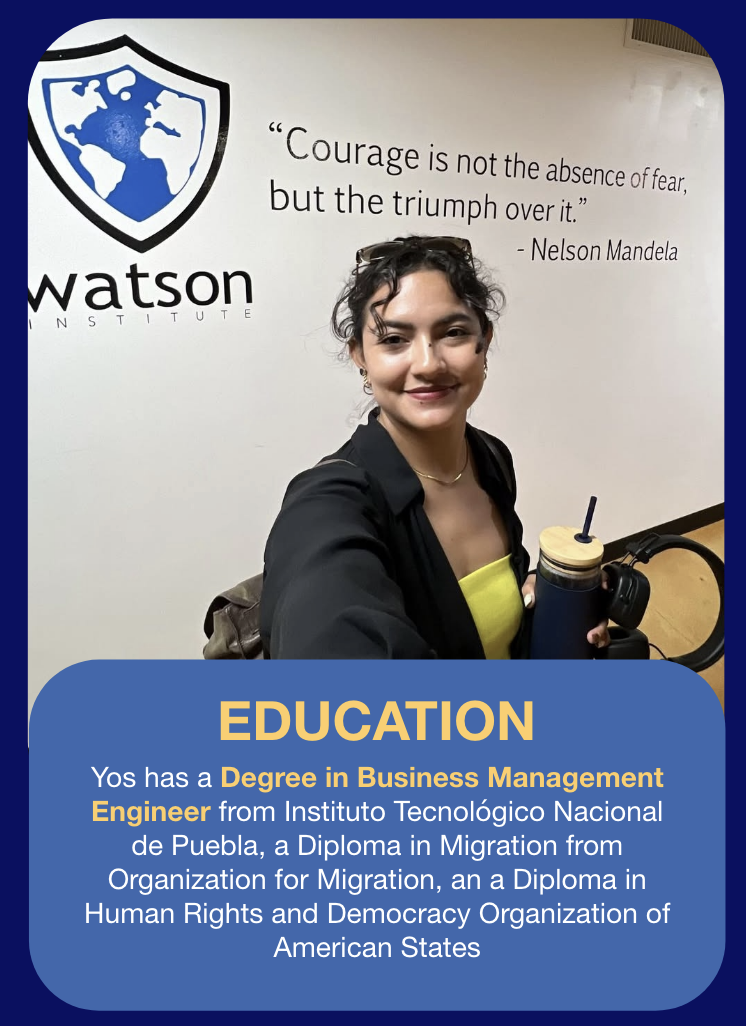 Yos is the founder of Yes She Can, an organization dedicated to empowering migrant women through educational and integration programs. Her work spans across 3 continents and 6 countries; tackling issues related to human mobility, inclusion, and women’s rights.